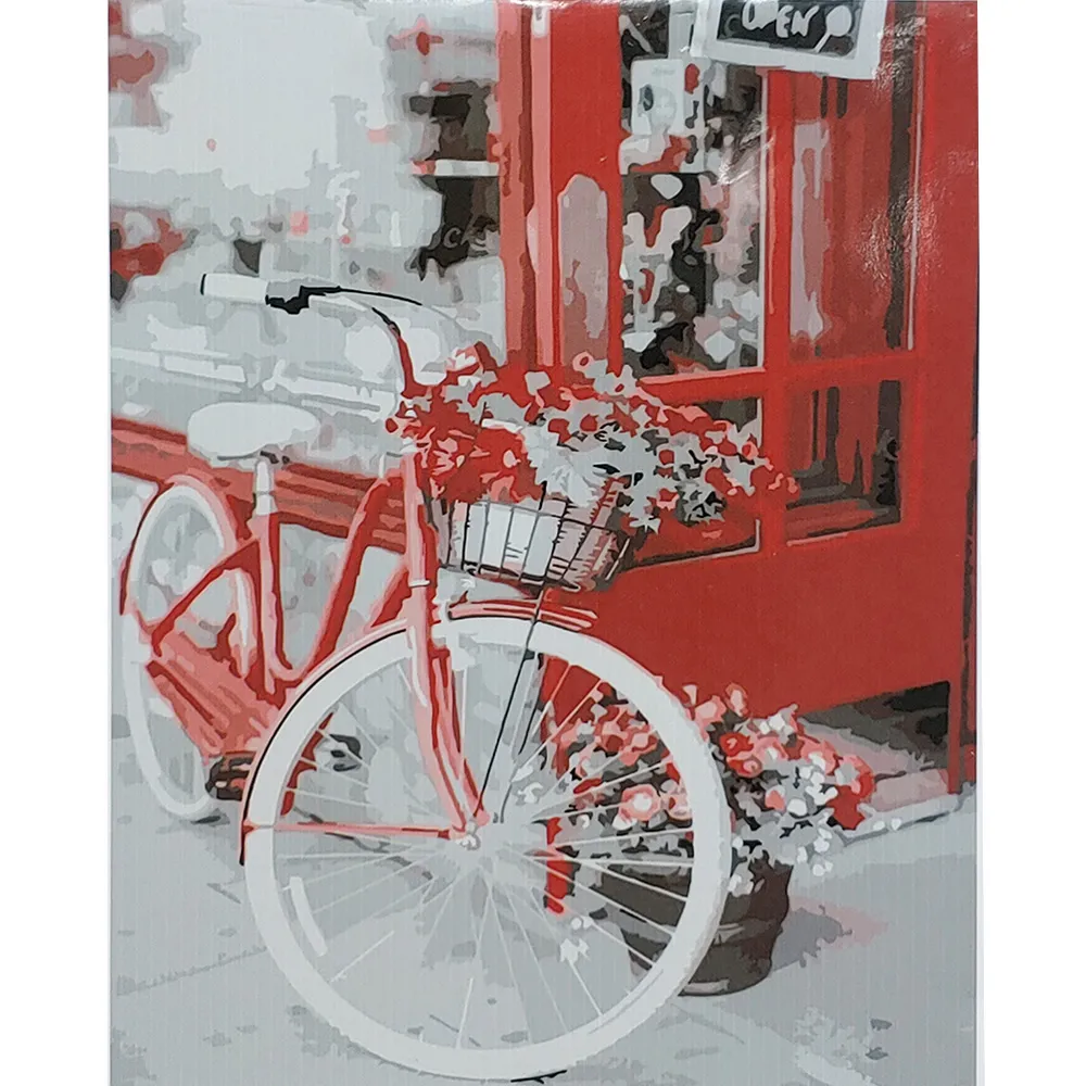 Картина за номерами Strateg Велосипед з квітами з лаком розміром 40х50 см (SY6857)