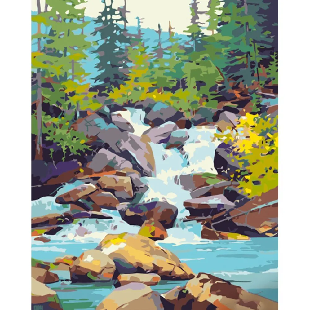 Картина за номерами Strateg Водоспад серед скель з лаком та з рівнем розміром 40х50 см (GS1459)