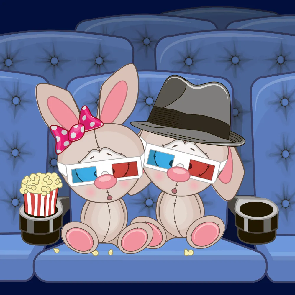 Картина за номерами Strateg Зайченята в кінотеатрі з лаком та з рівнем розміром 30х30 см (ES167)