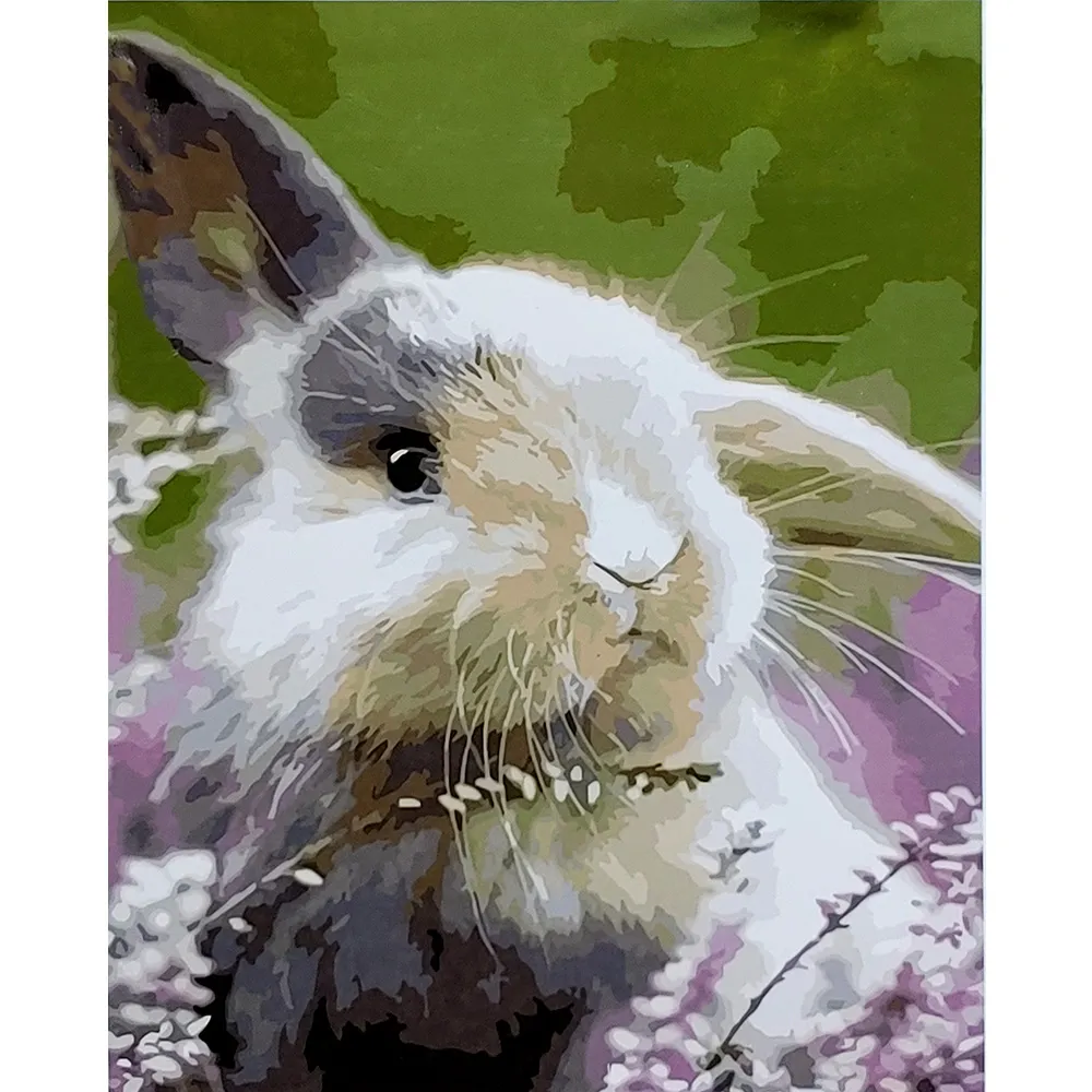 Картина за номерами Strateg Зайчик у квіточках з лаком розміром 40х50 см (SY6899)