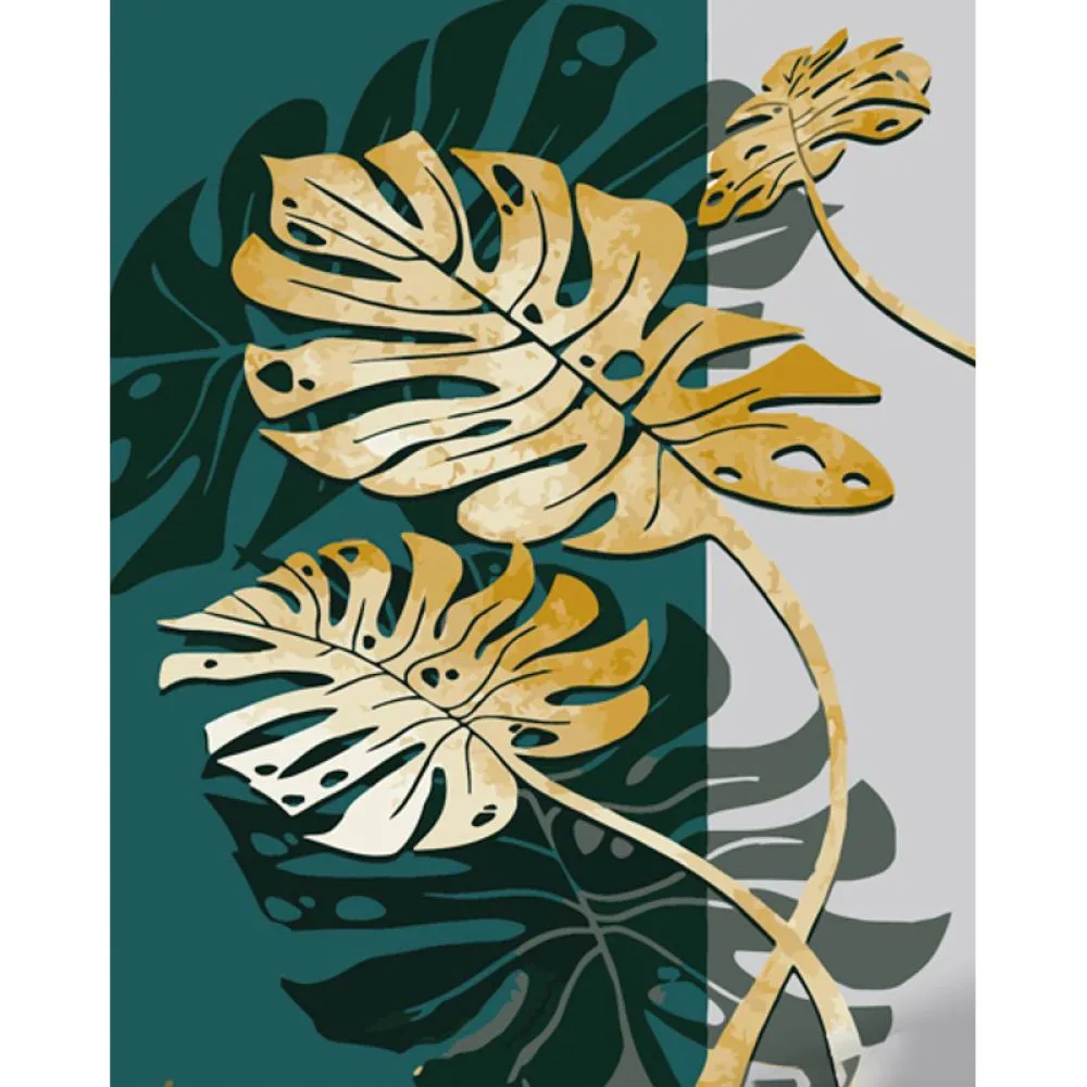 Картина за номерами Strateg Золота монстера з лаком та з рівнем розміром 40х50 см (GS1423)