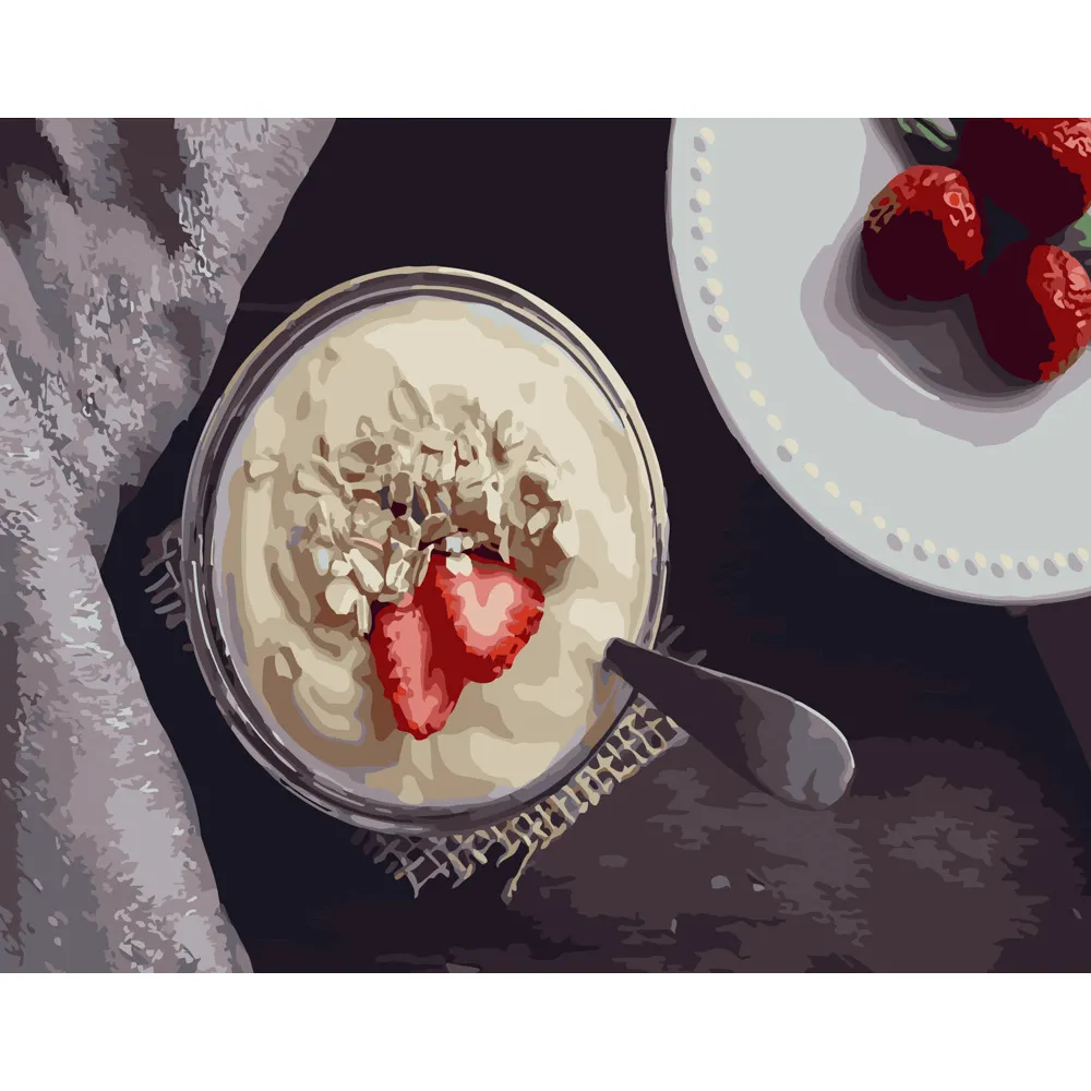 Картина за номерами Strateg Йогурт з полуницею розміром 40х50 см (GS258)