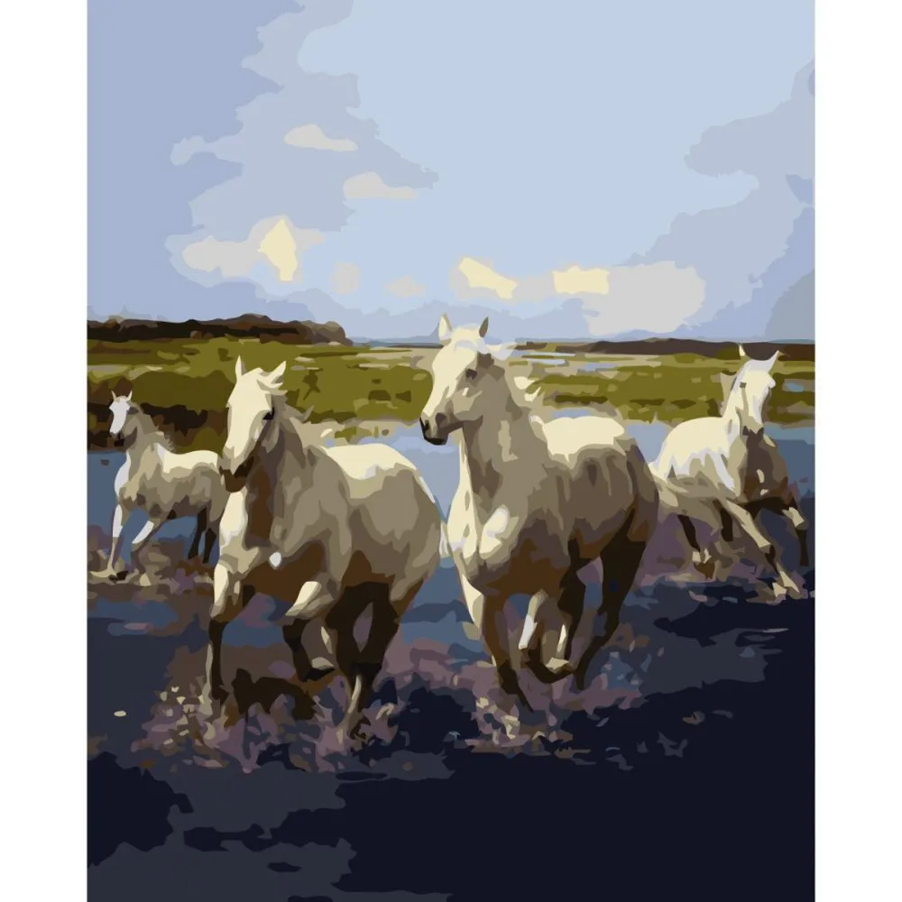 Картина за номерами Четвірка коней Strateg з лаком розміром 40х50 см (VA-0362)