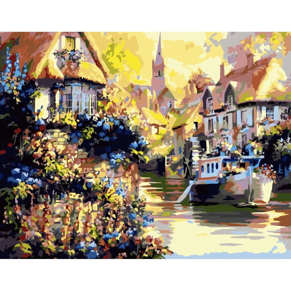 Картина за номерами Човен у гавані Strateg з лаком розміром 40х50 см (VA-0216)