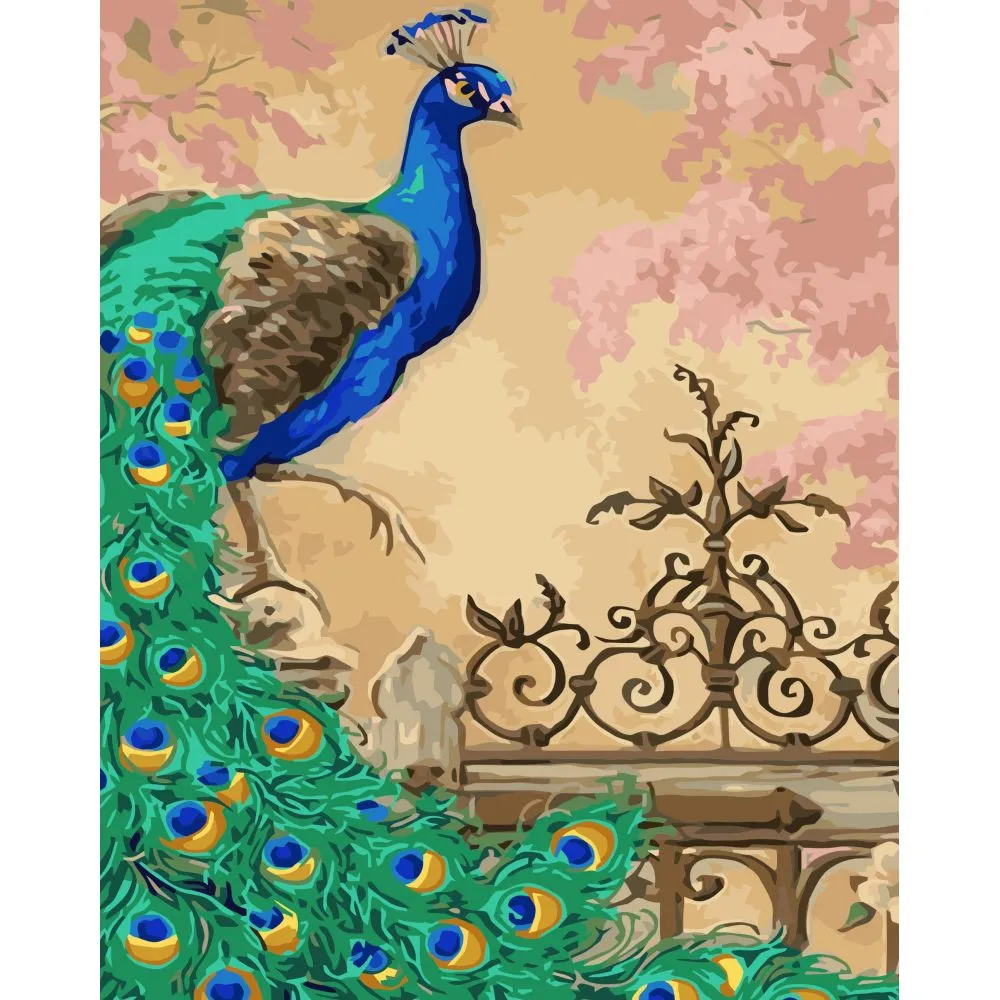 Картина за номерами Strateg Павич на хвіртці з лаком розміром 40х50 см VA-3414