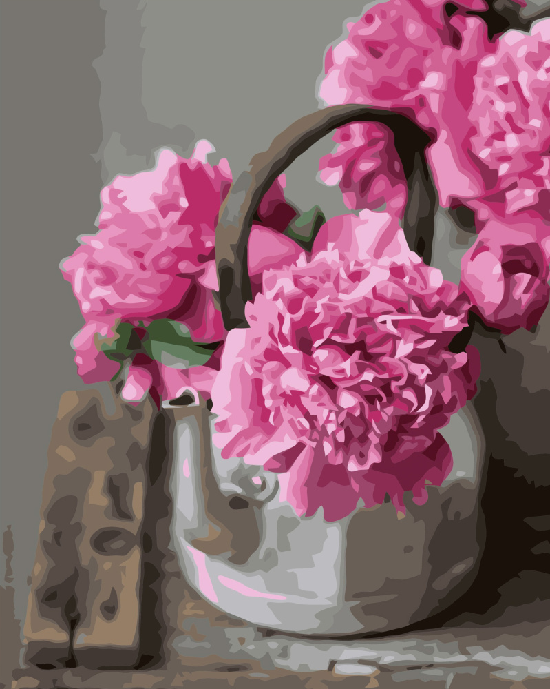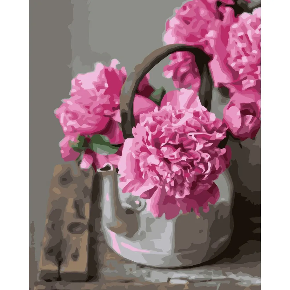 Картина за номерами Strateg Півонії в чайнику з лаком розміром 40х50 см VA-3430