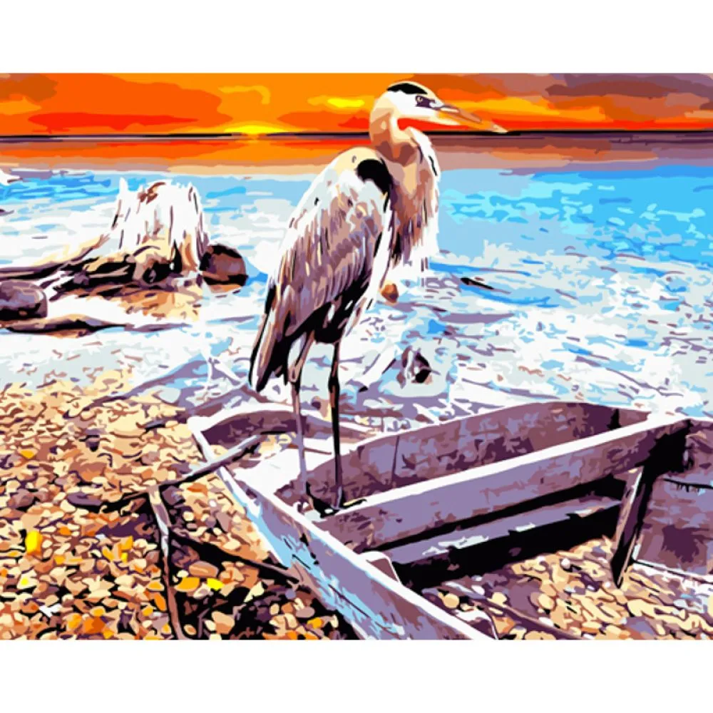 Картина за номерами Strateg Чапля в човні з лаком розміром 40х50 см (GS1338)