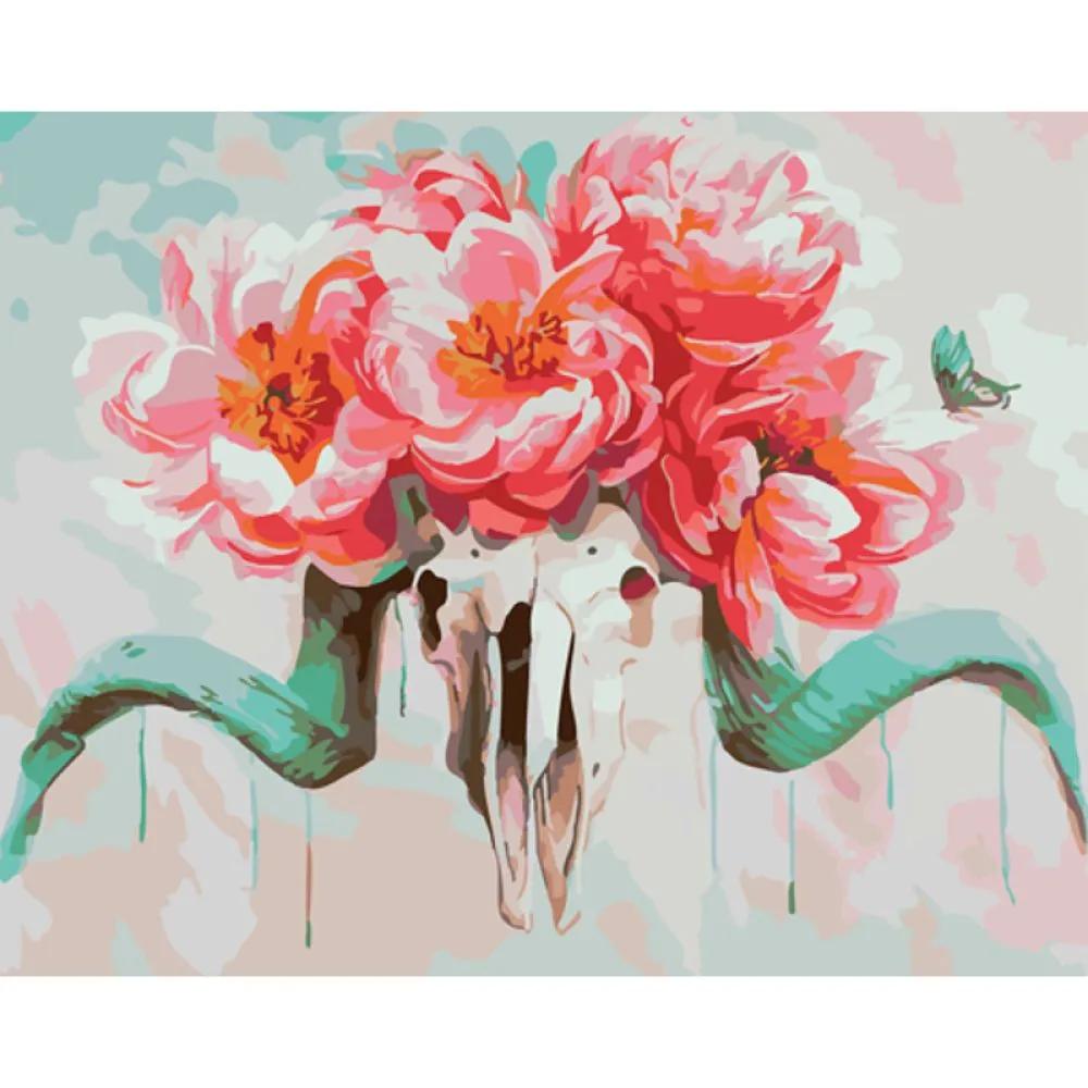 Картина за номерами Strateg Череп з квітами розміром 40х50 см (GS1112)
