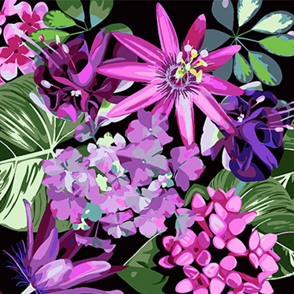 Картина за номерами Strateg Цвітіння краси на чорному фоні розміром 40х40 см (AV4040-27)