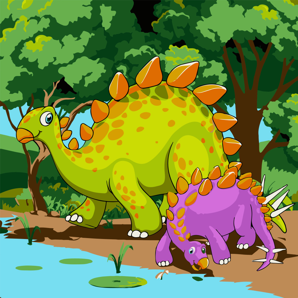 Картина за номерами Strateg Динозаври біля берега з лаком та з рівнем розміром 30х30 см (ES-0833)