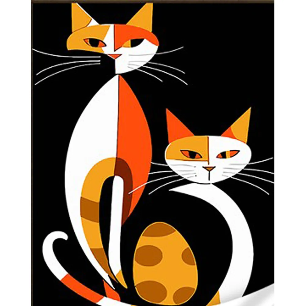 Картина за номерами Strateg Геометричні коти в стилі сюрреалізму з лаком та з рівнем розміром 30х40 см (SS1010)