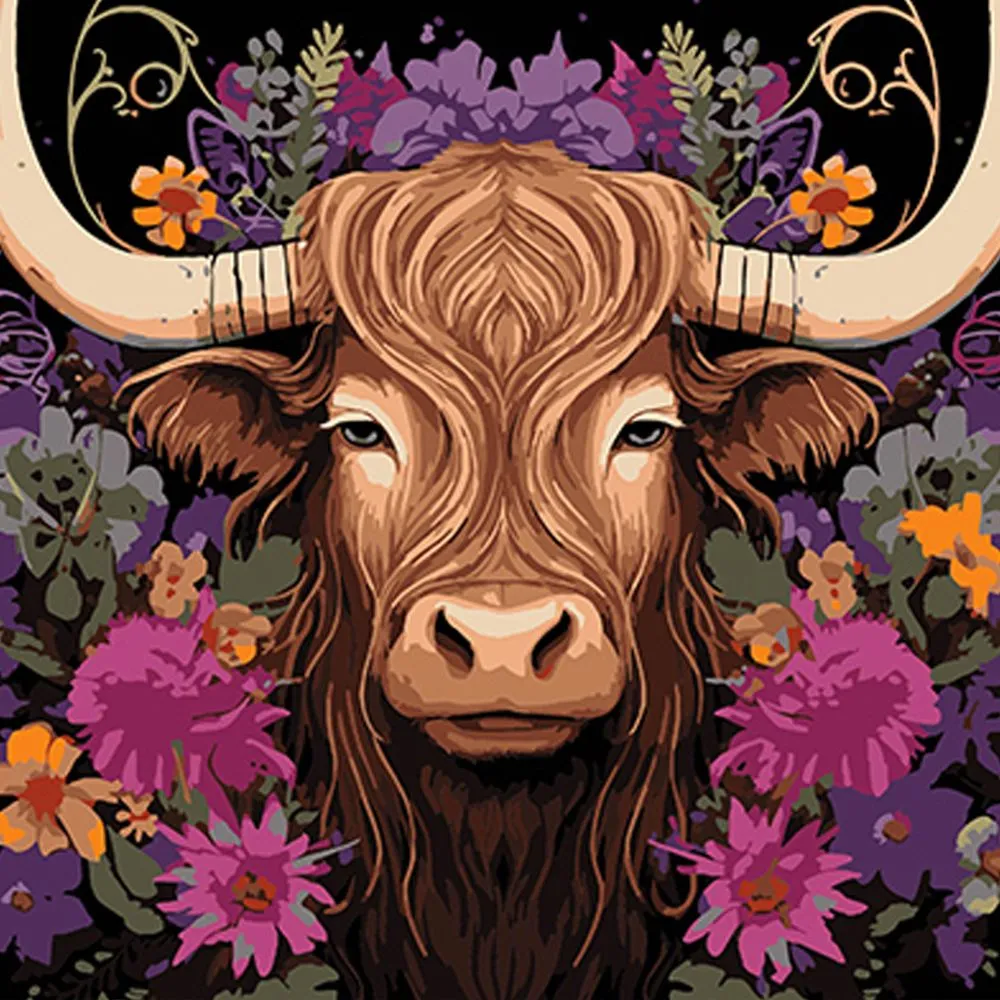 Картина за номерами Strateg Корова в квітковій красі на чорному фоні розміром 40х40 см (AV4040-72)
