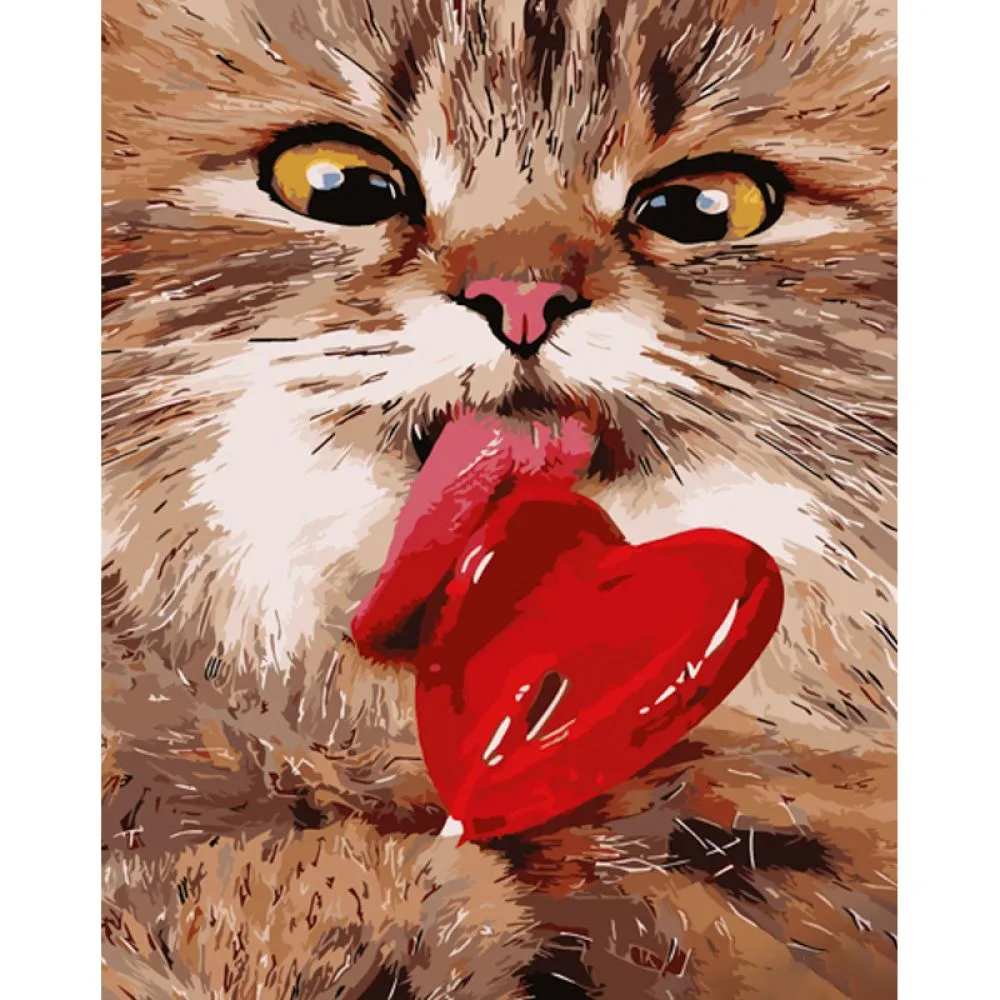 Картина за номерами Strateg Котик з льодяником розміром 40х50 см (GS1025)