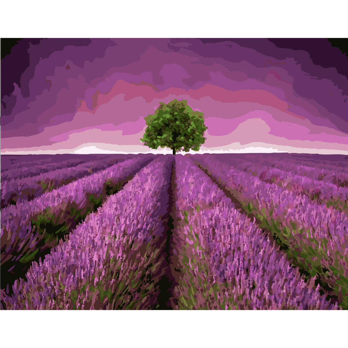 Картина за номерами Strateg Лавандове поле з деревом з лаком розміром 40х50 см SY6620