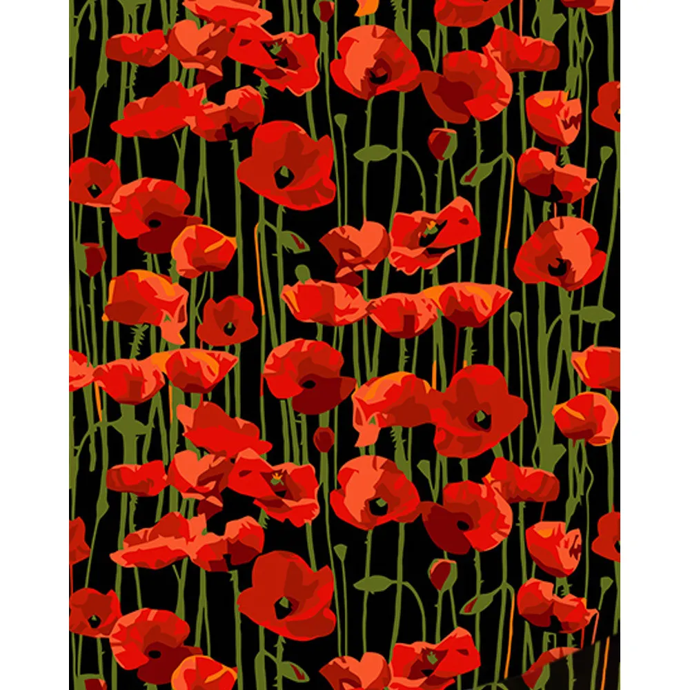 Картина за номерами Strateg Макове поле на чорному фоні розміром 40х50 см (AH1023)