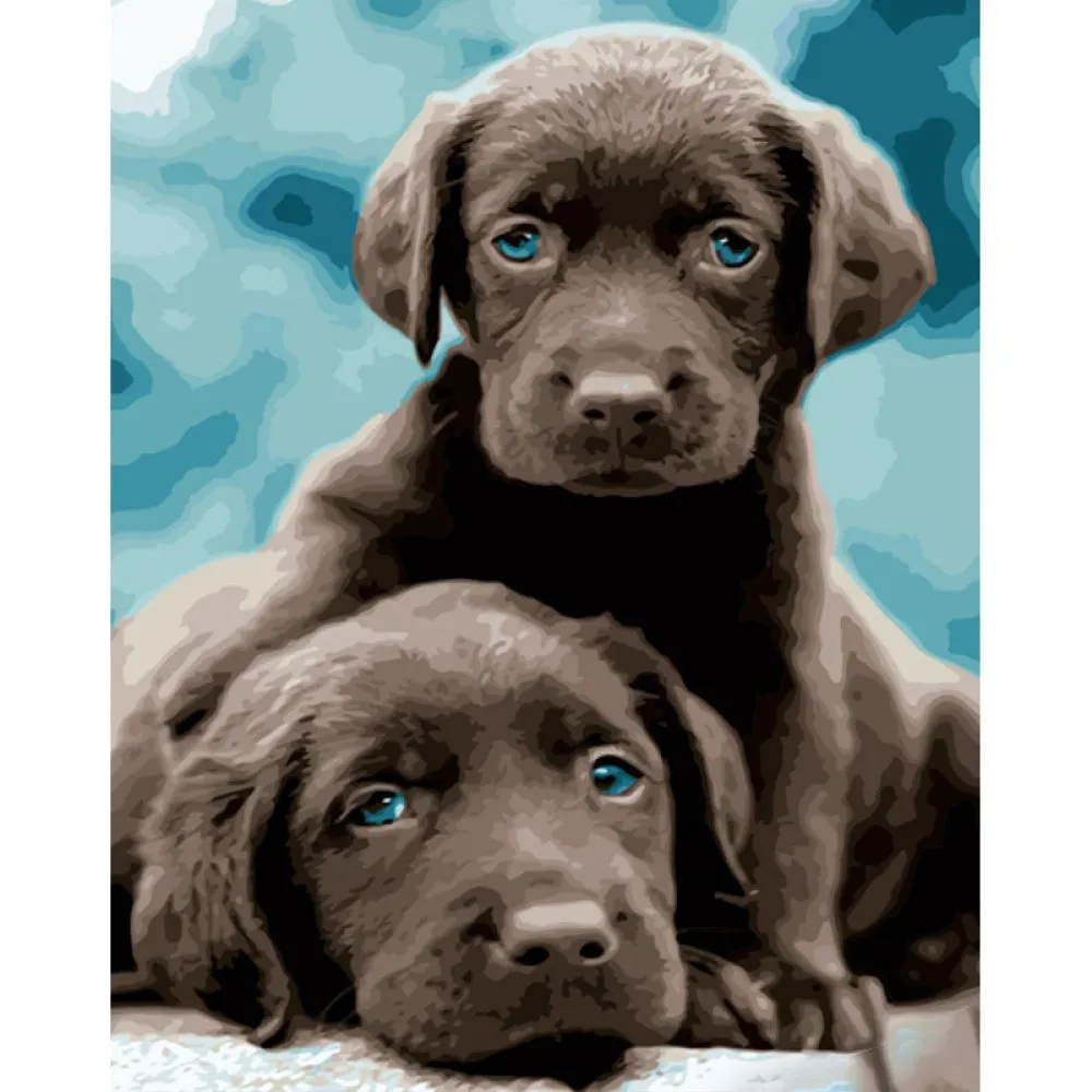Картина за номерами Strateg Маленькі лабрадори розміром 40х50 см (GS1184)