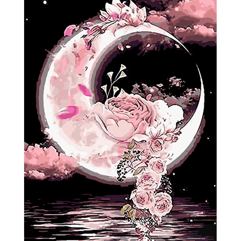Картина за номерами Strateg Місяць у квітах на чорному фоні розміром 40х50 см (AH1058)