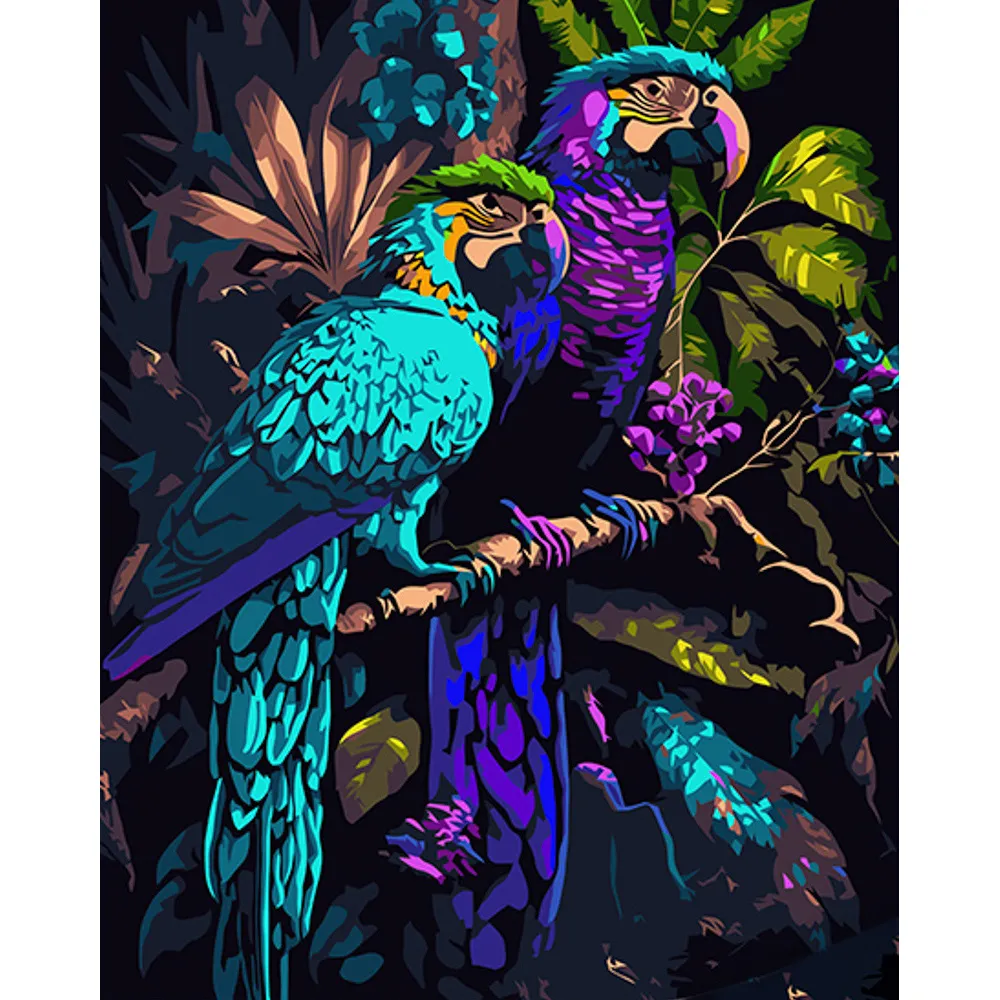 Картина за номерами Strateg Папуги на гілці на чорному фоні розміром 40х50 см (AH1012)