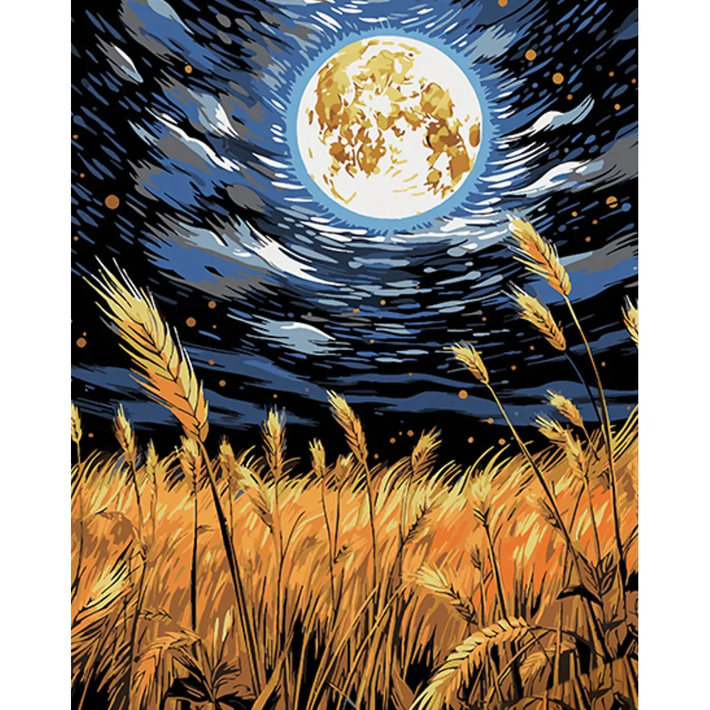 Картина за номерами Strateg Пшениця серед зоряного неба на чорному фоні розміром 40х50 см (AH1066)