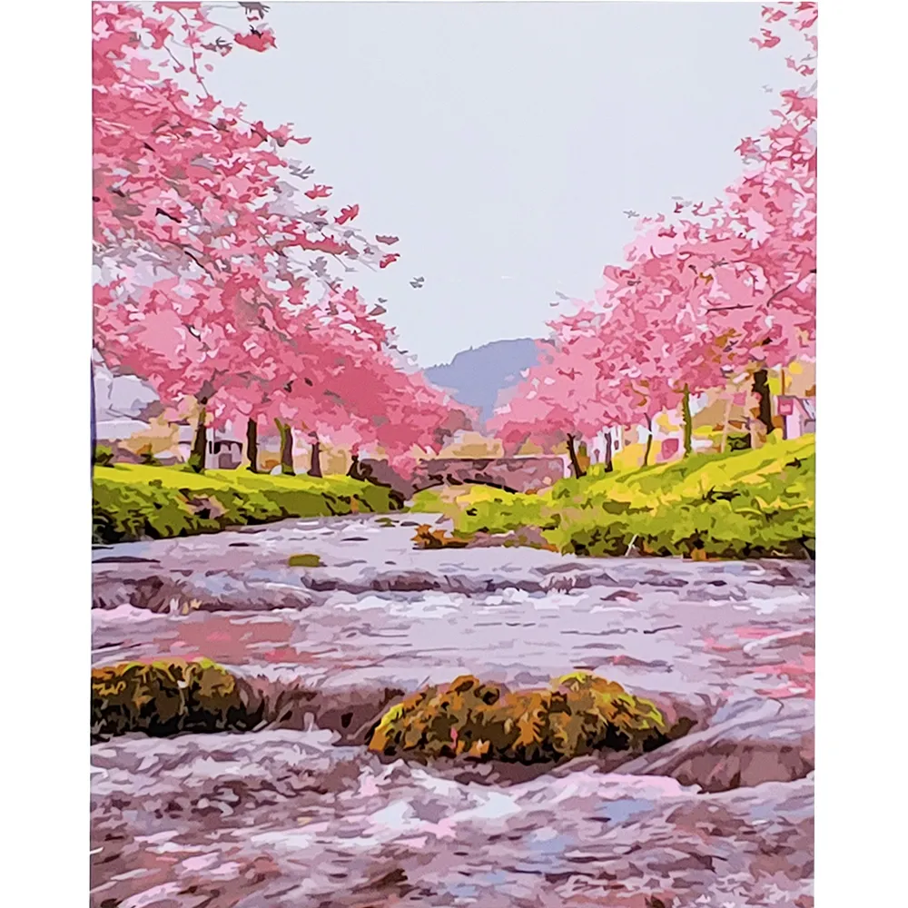 Картина за номерами Strateg Сакура біля води з лаком розміром 40х50 см (SY6659)