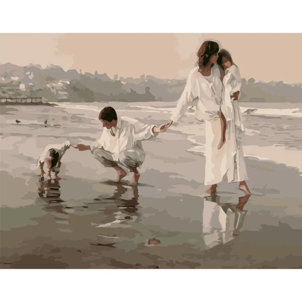 Картина за номерами Strateg Сім'я на березі моря з лаком розміром 40х50 см VA-3503