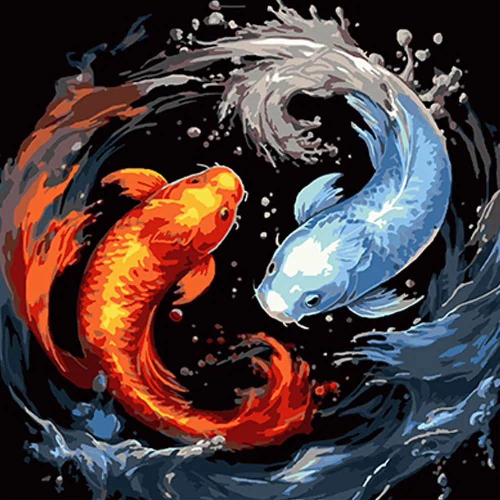 Картина за номерами Strateg Символічний образ риб на чорному фоні розміром 40х40 см (AV4040-50)