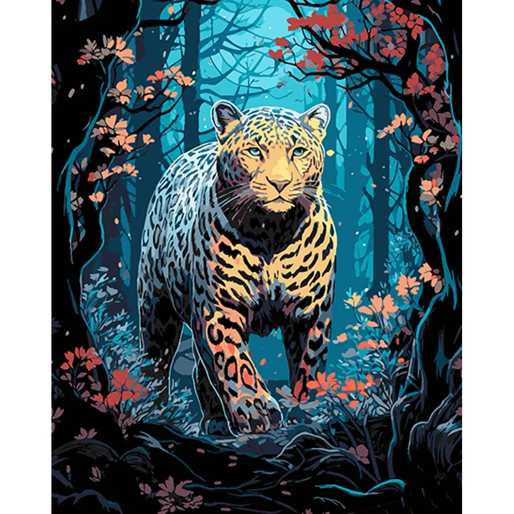 Картина за номерами Strateg Леопард на полюванні на чорному фоні розміром 40х50 см (AH1062)