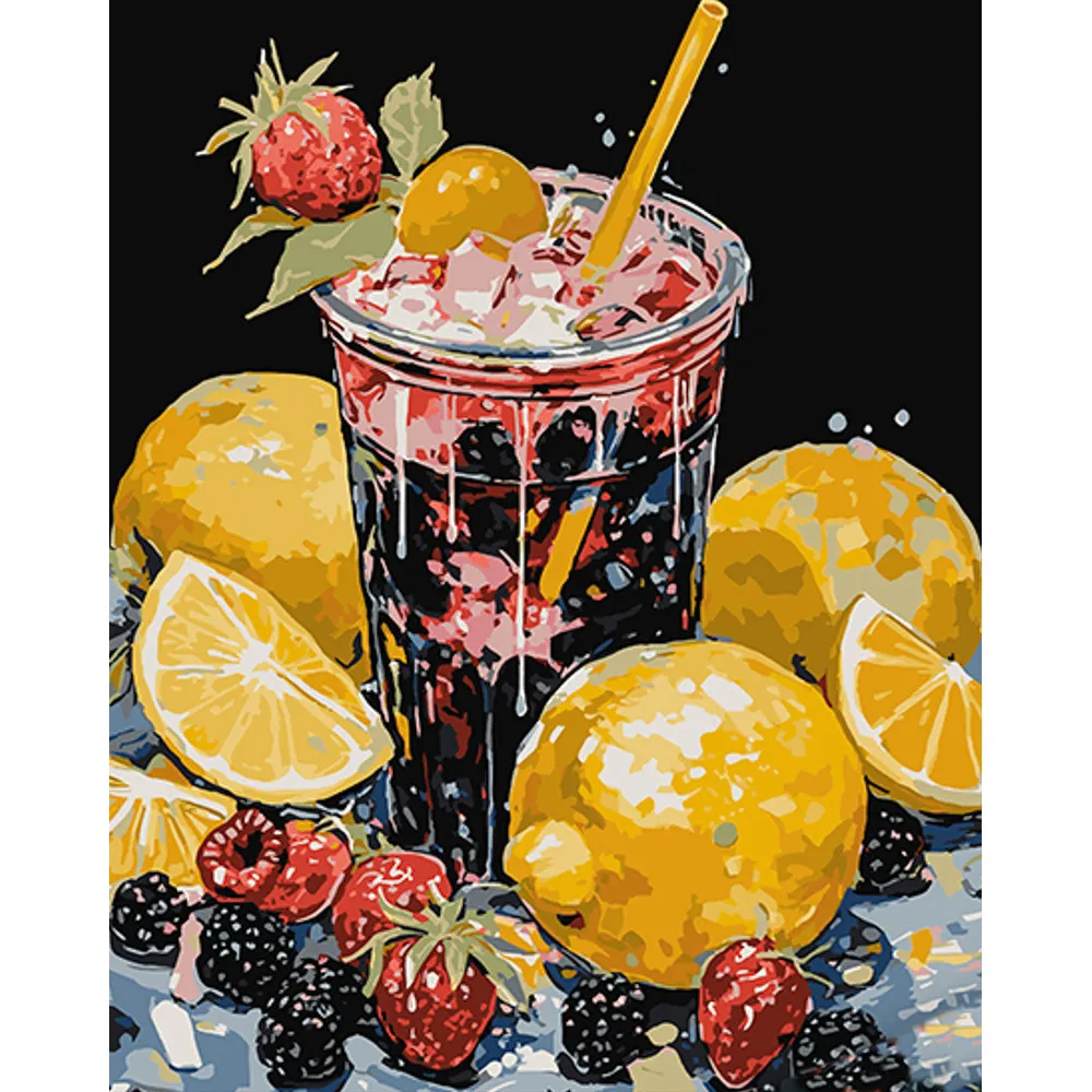 Картина за номерами Strateg Ягідний морс на чорному фоні розміром 40х50 см (AH1060)
