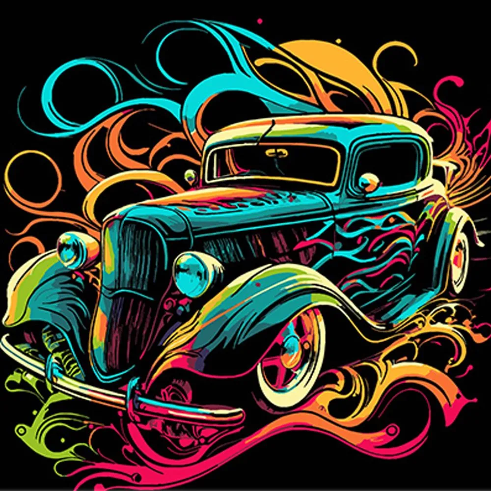 Картина за номерами Strateg Яскраве ретро авто на чорному фоні розміром 30х30 см (SH3030-19)