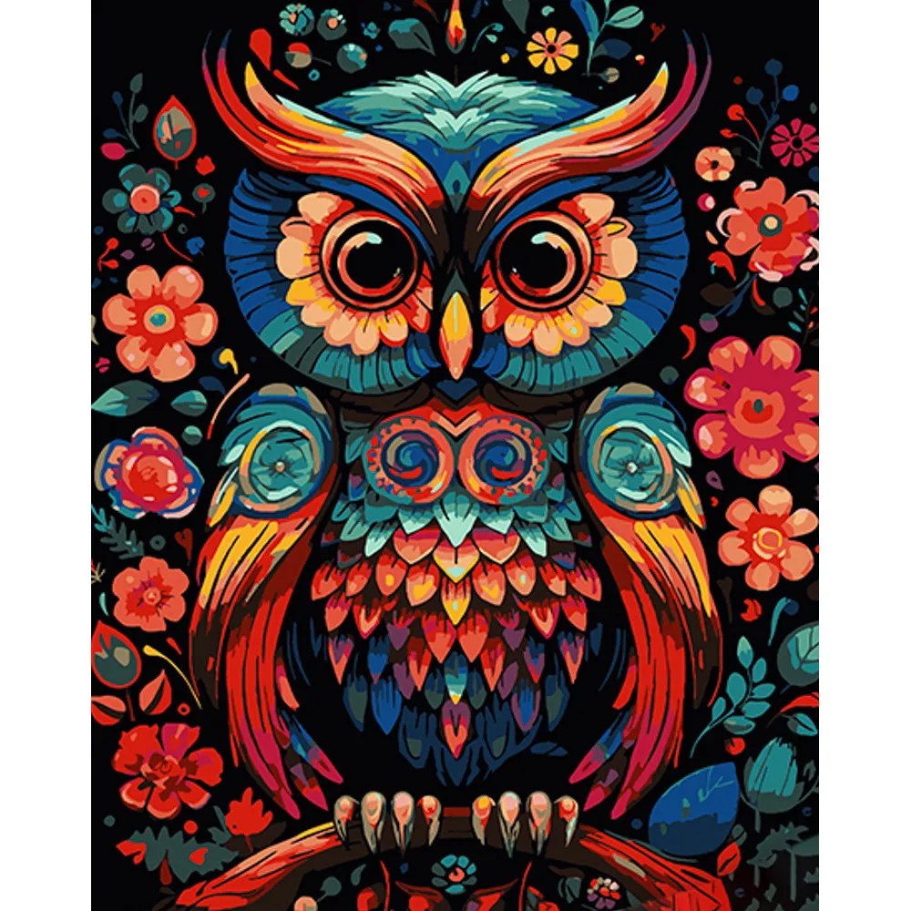 Картина за номерами Strateg Задумлива сова на чорному фоні розміром 40х50 см (AH1078)
