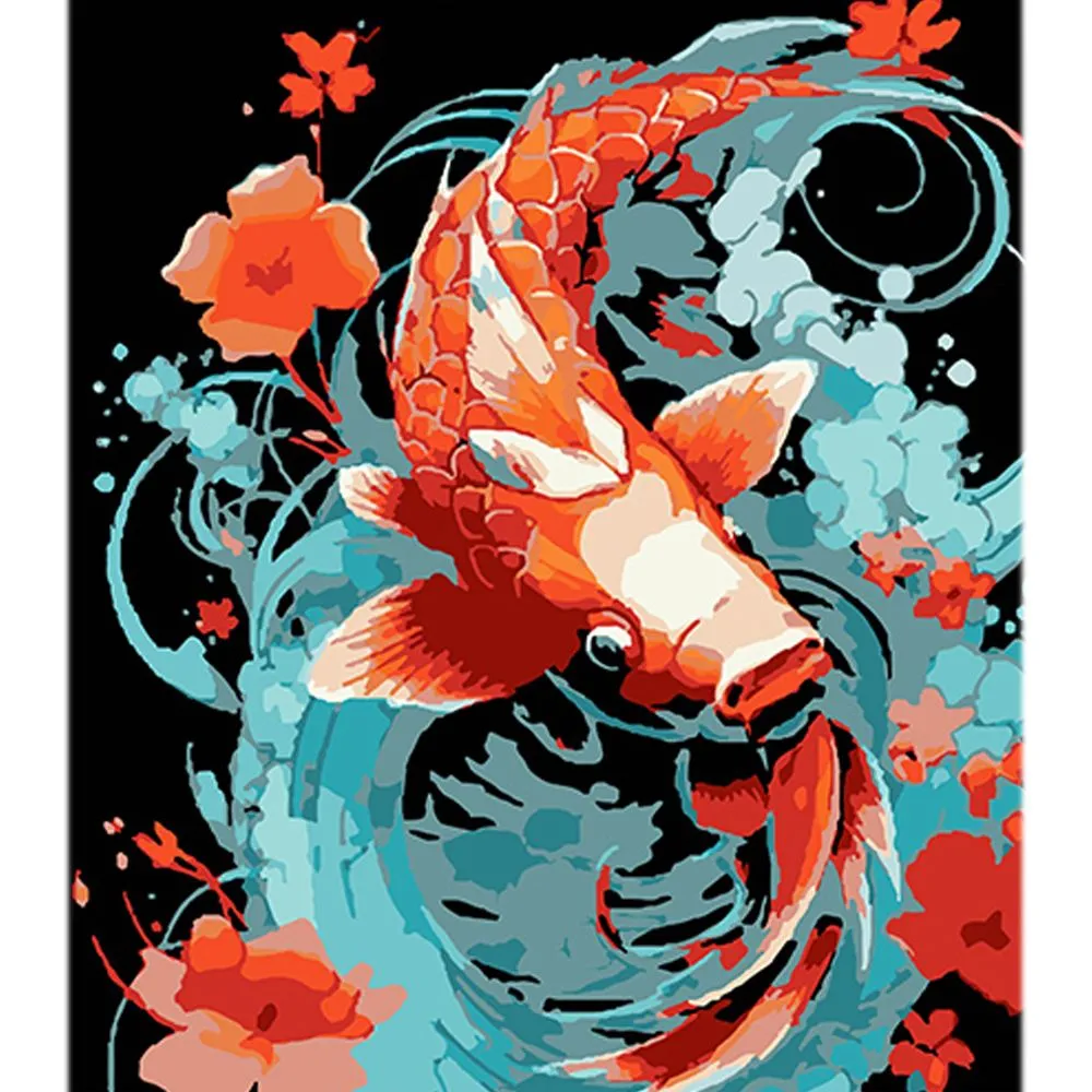Картина за номерами Strateg Золота кої у мрійливих водах на чорному фоні розміром 40х50 см (AH1137)