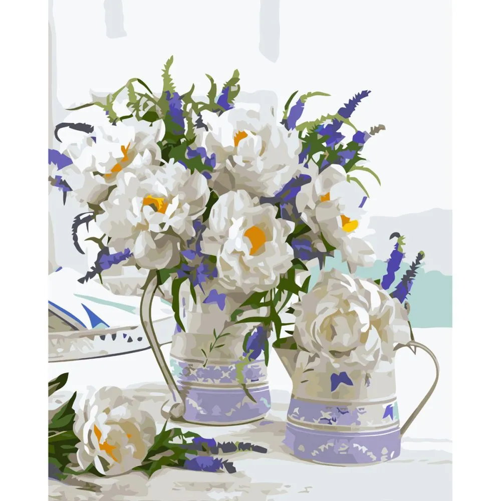 Картина за номерами Strateg Біло-блакитний букет з лаком розміром 40х50 см VA-3640