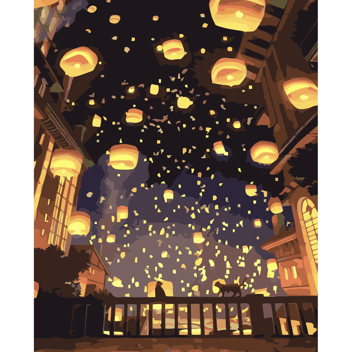 Картина за номерами Strateg Ліхтарики в нічному небі з лаком розміром 40х50 см VA-3687
