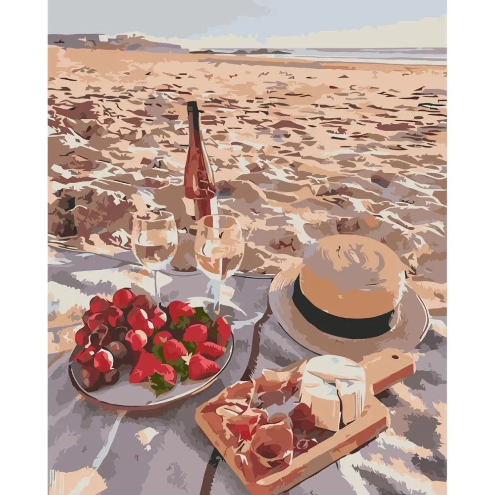 Картина за номерами Strateg Пікнік на березі океану з лаком розміром 40х50 см VA-3675