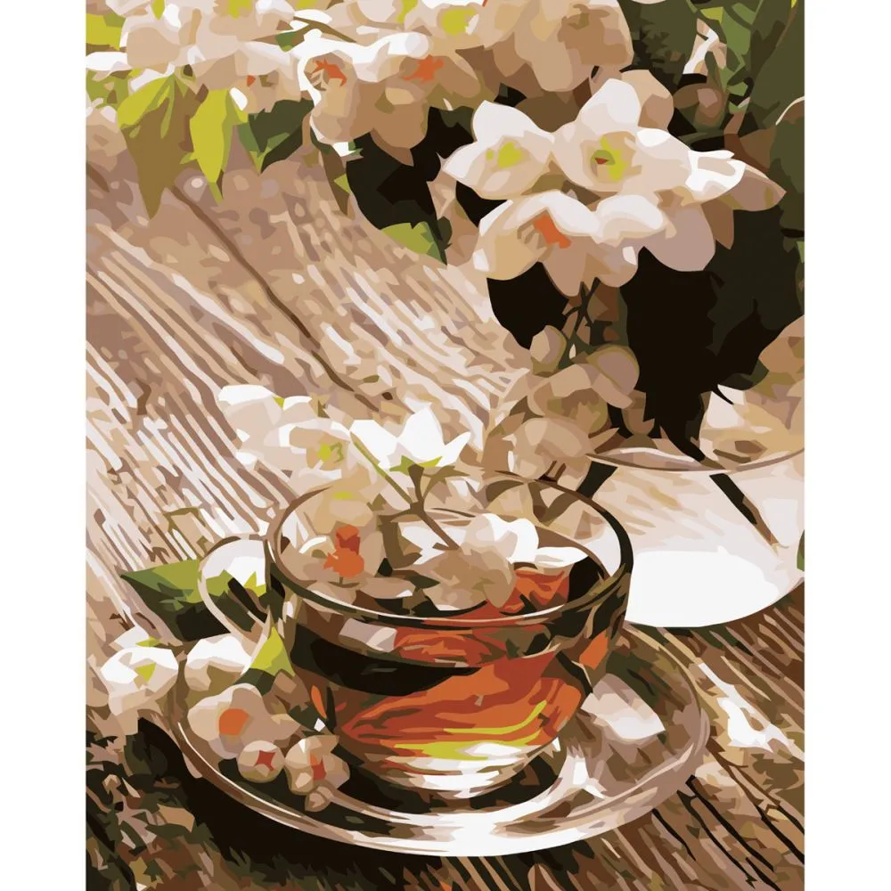 Картина за номерами Strateg Жасминовий чай з лаком розміром 40х50 см VA-3637