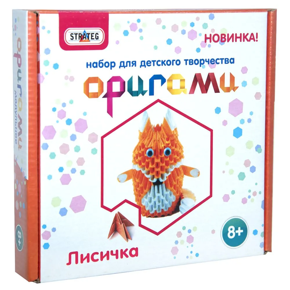 У комплекті набір паперу, необхідний для створення милої лисички. Кожен аркуш паперу необхідно скласти, як це показано в інструкції, далі кожна частина (модуль), що вийшла, складається один в одного.