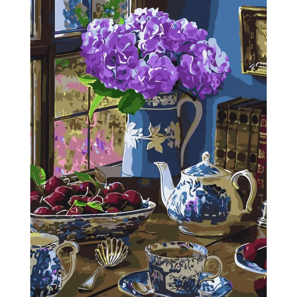 Картина за номерами Strateg Гортензія та черешні з лаком розміром 40х50 см (SY6822)