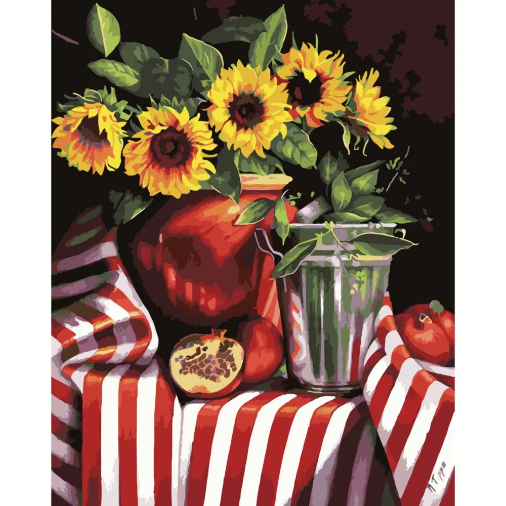 Картина за номерами Strateg Гранат та соняшники з лаком розміром 40х50 см (SY6673)