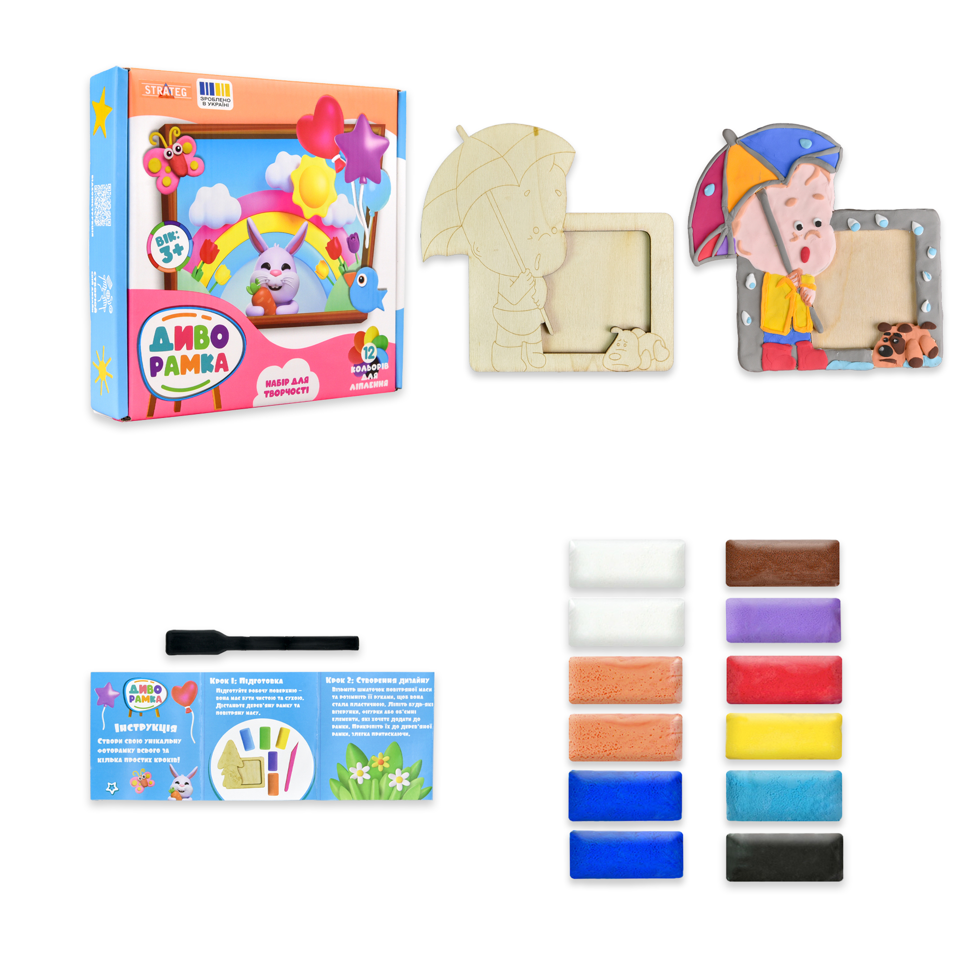 Набір для творчості «Диворамка» допоможе створити унікальну фоторамку своїми руками. Дерев’яна основа вже є в комплекті, а за допомогою маси для ліплення та інструменту можна прикрасити її будь-яким декором. Ідеально підходить для дітей віком від 3 років.