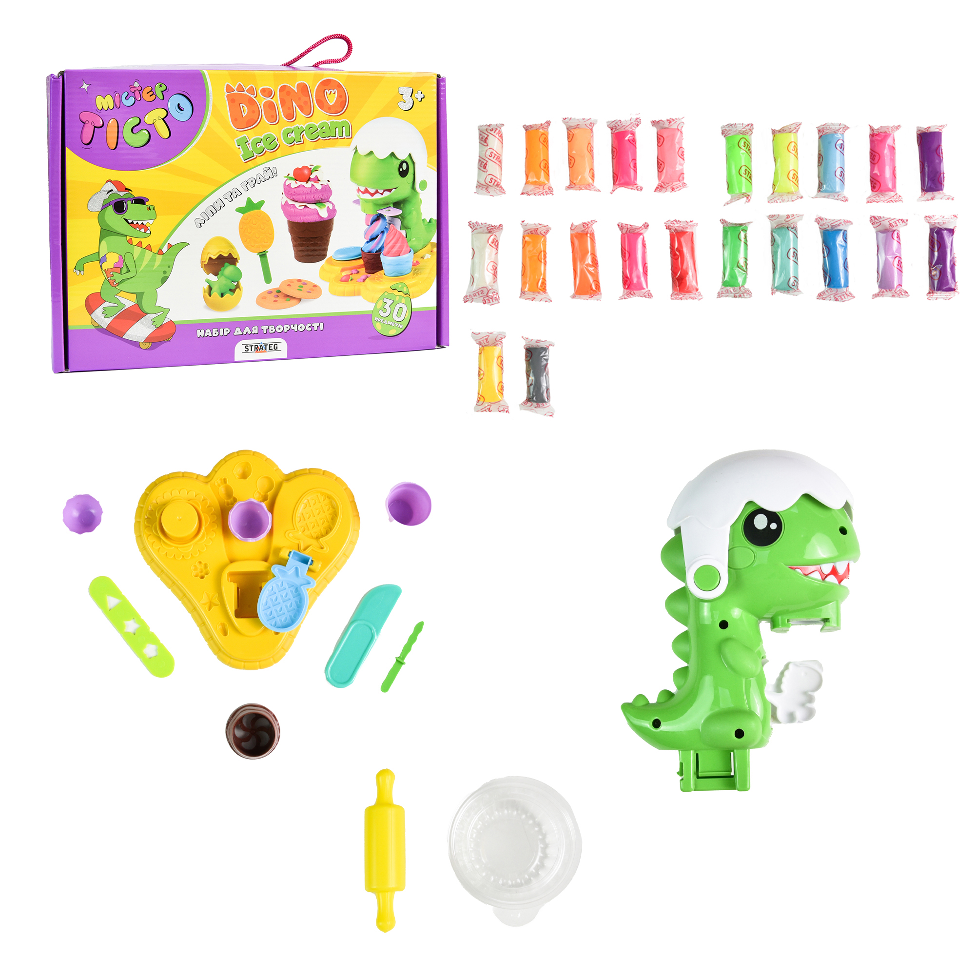 Містер тісто “Dino ice cream” - яскравий набір для творчості, який подарує дітям можливість поринути у світ фантазії та створити різноманітні смаколики для маленького динозаврика, який йде у комплекті. Набір розвиває творчі здібності, уяву та дрібну моторику рук. Нехай ваші малюки насолоджуються творчістю та створюють неповторні шедеври разом із “Dino ice cream” від компанії “Strateg”.