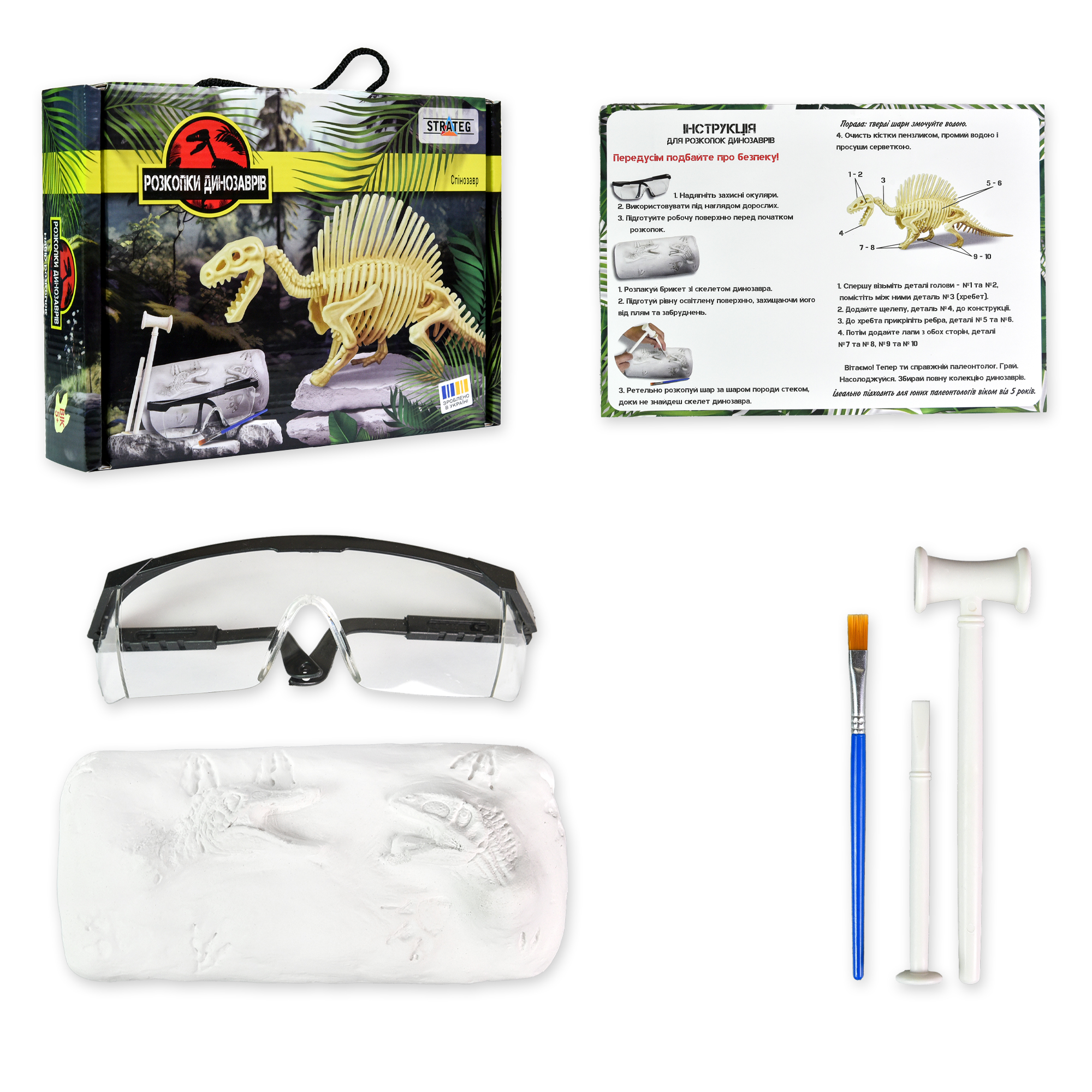 Набір для творчості "Розкопки динозавра. Спінозавр" — цікавий та захопливий набір для допитливих дослідників. У коробці ви знайдете необхідні інструменти, окляри для захисту, гіпсовий брикет зі скелетом мамонта та пояснення, як саме діяти. Може здатися, що археологи вже знайшли всі скам'янілості, але скажемо по секрету, що ми дещо зберегли. Нумо до нових відкриттів!
