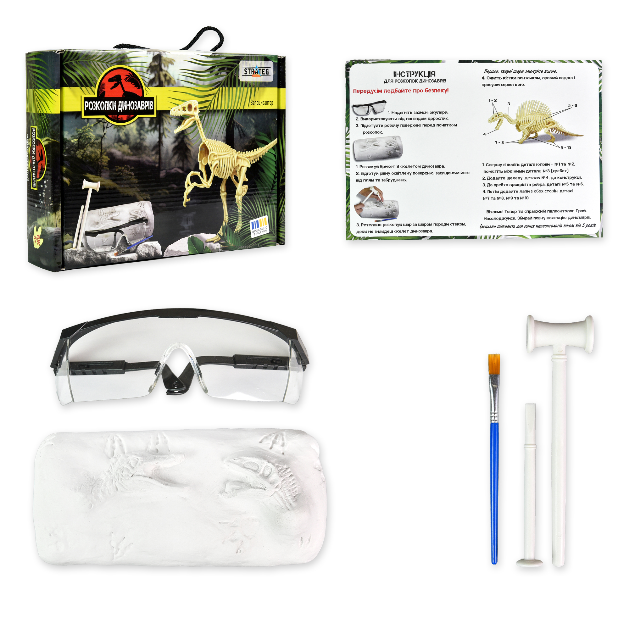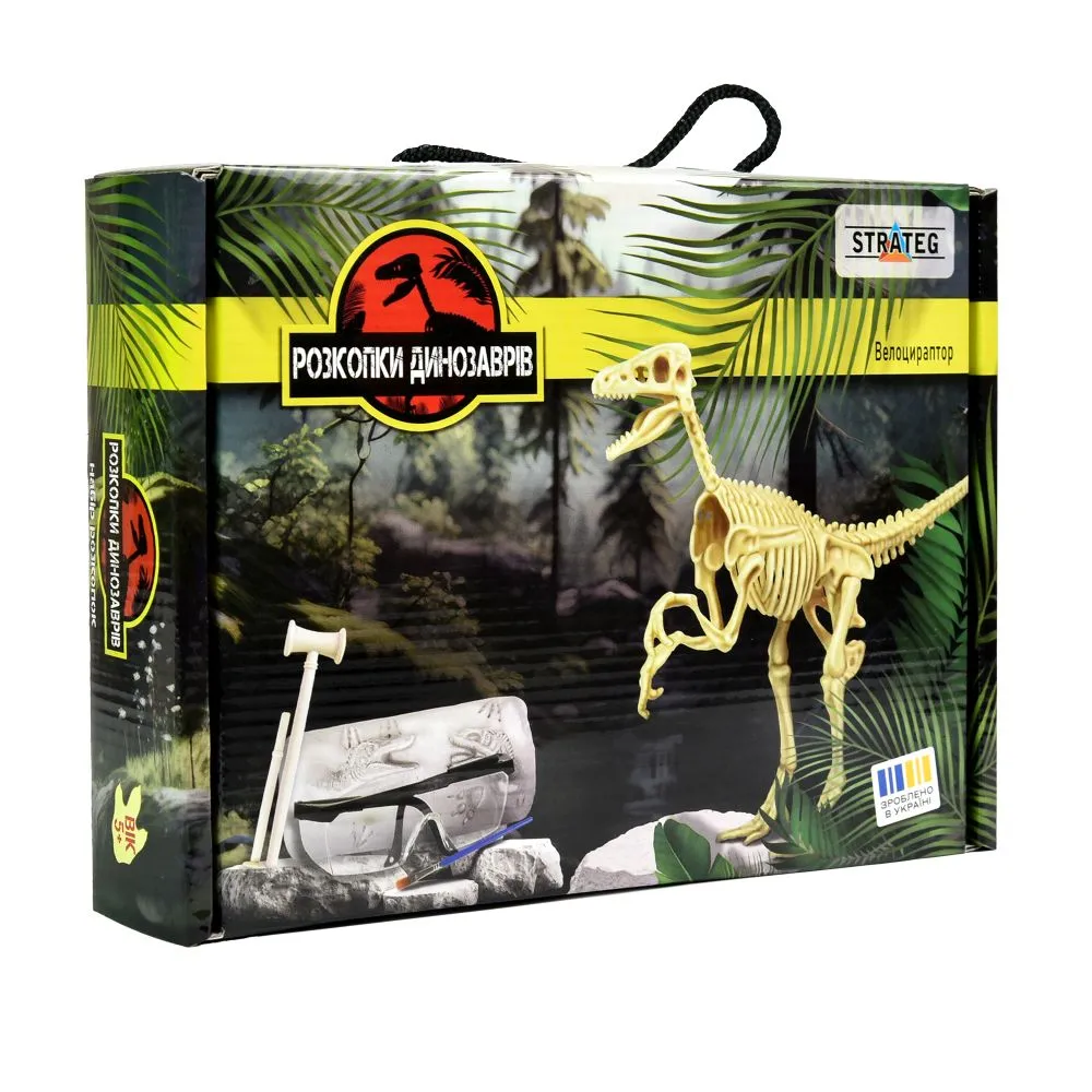 Набір для творчості "Розкопки динозавра. Велоцираптор" — чудова знахідка для юних дослідників! У комплекті ви знайдете все необхідне: інструменти, захисні окуляри, гіпсовий брикет зі скелетом динозавра та покрокові інструкції. Здається, що всі скам'янілості вже давно відкриті, але в нас є таємний запас! Час вирушати на розкопки та робити власні великі відкриття!