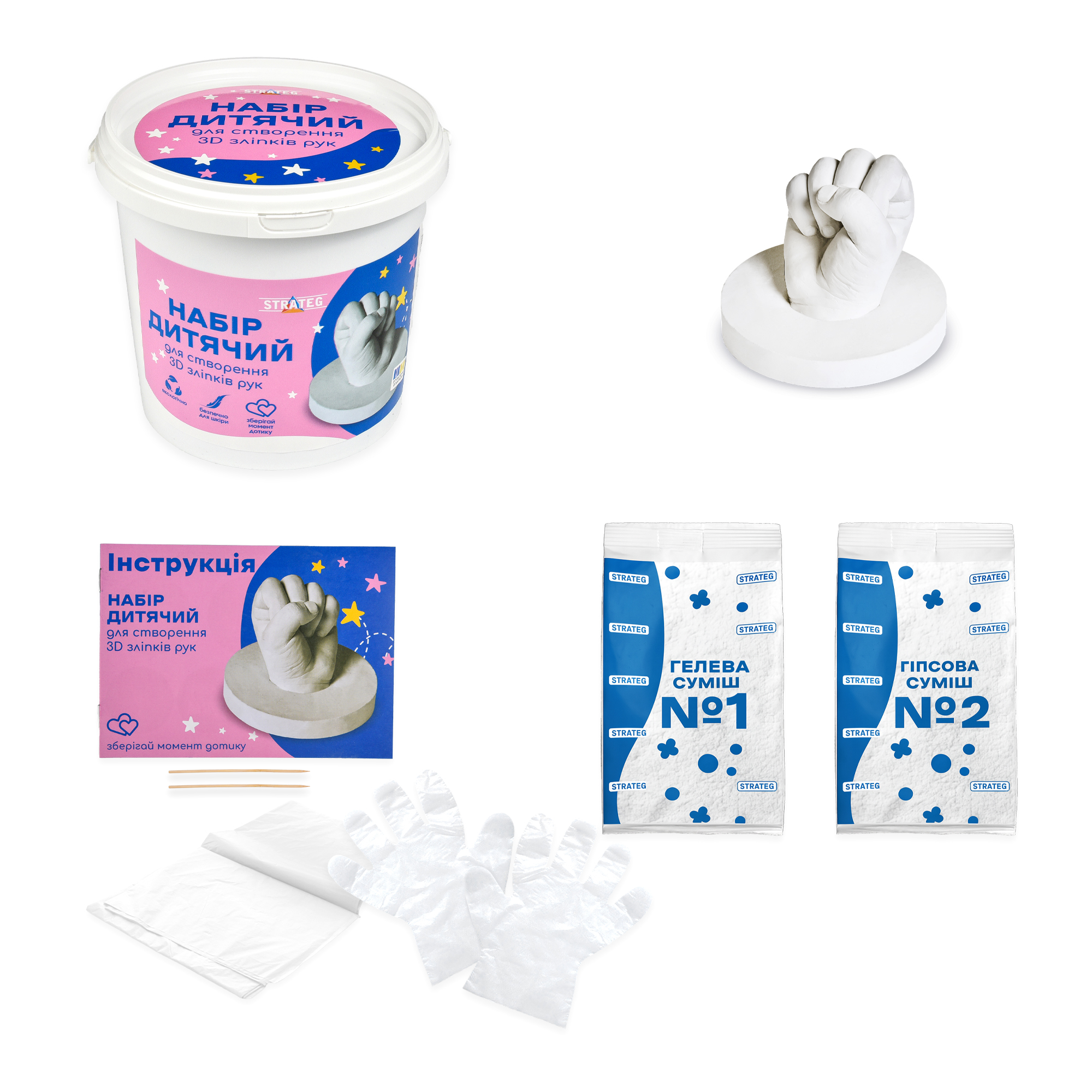 Маленька ручка, яка так швидко росте. Цей набір допоможе зберегти зворушливий момент — перший дотик та тепло дитячої долоньки. Ідеальний подарунок для молодих батьків, хрещених або як пам'ятка про перші роки життя.