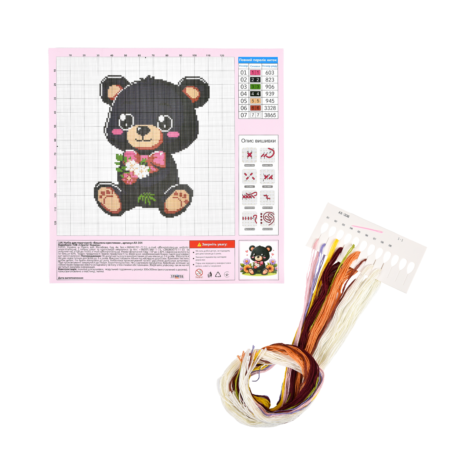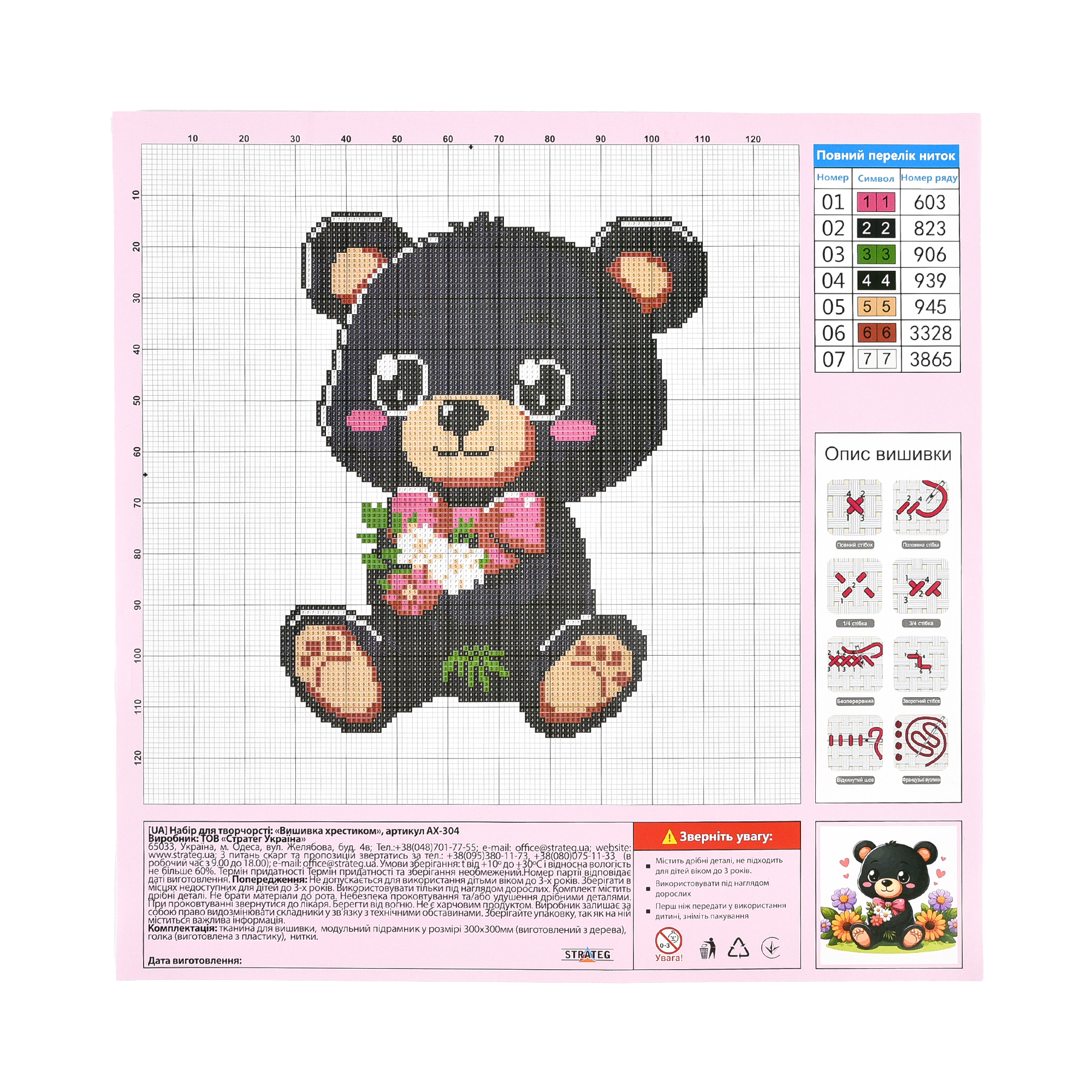 Набір для творчості вишивка хрестиком Ведмедик Strateg розміром 30х30 см (AX-304)