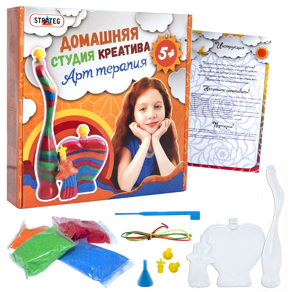 Креативний набір «Арт-терапія» (5006, Strateg) – це домашня студія креативу, створена для допитливих та розумних дітлахів. Набір включає три різні фігурні баночки та казковий пісочок, з якого можна створювати фантазійні споруди.