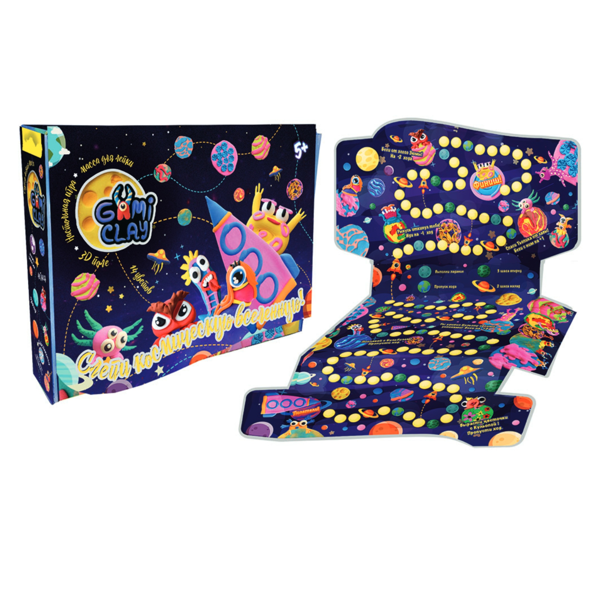 «Gumi Clay» - це дуже яскрава гра, тому точно зможе привернути увагу вашої дитини! Різнобарвна маса для ліплення допоможе малюкові пізнати нові кольори і створити свій власний світ. Для початку гри необхідно перетворити коробку в ігрове поле, зліпити персонажів або вибрати собі фішку. Гравці по черзі кидають кубик, визначаючи кількість ходів і просуваються по полю. Перемагає той, хто першим добереться до фінішу. Гра позитивно впливає на творчі здібності, посидючість і досягнення цілей.