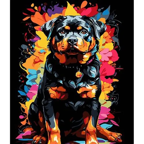 Картина за номерами Strateg Ротвейлер на фоні кольорових квітів на чорному фоні розміром 30х40 см (FH-10)
