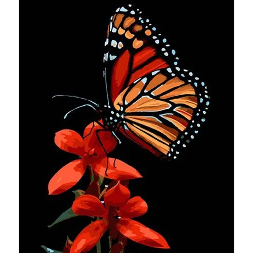 Картина за номерами Strateg Краса метелика на червоному цвіті на чорному фоні розміром 30х40 см (FH-13)