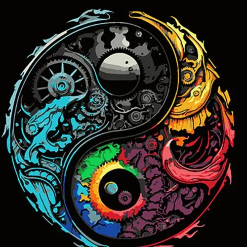 Картина за номерами Strateg Барвистий символ Інь Ян на чорному фоні розміром 40х40 см (AV4040-76)