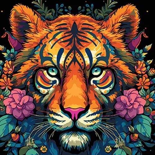 Картина за номерами Strateg Яскравий тигр на чорному фоні розміром 40х40 см (AV4040-78)